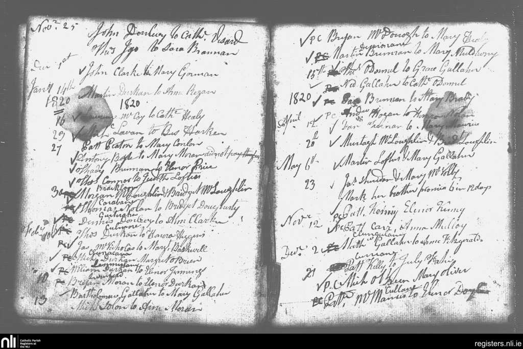 Swineford; County of Mayo; Diocese of Achonry. Marriages, Nov. 1819 to Dec. 1820