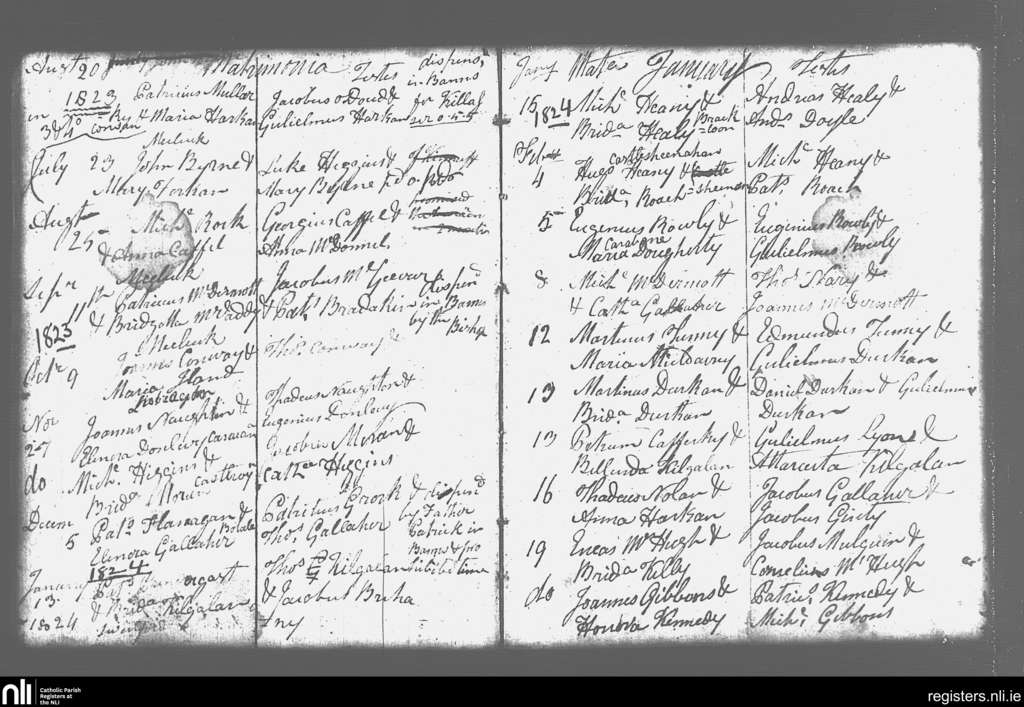 Swineford; County of Mayo; Diocese of Achonry. Marriages, July 1823 to Feb. 1824