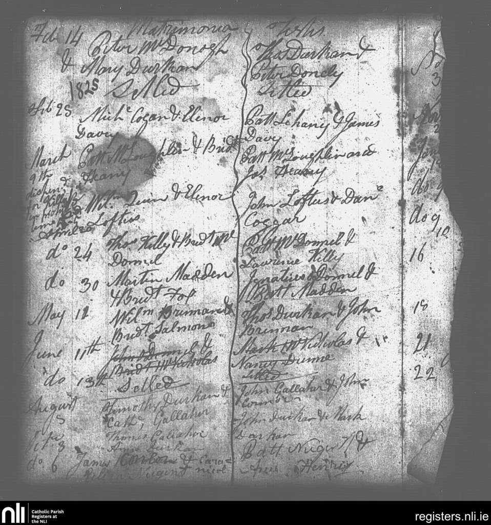 Swineford; County of Mayo; Diocese of Achonry. Marriages, Feb. 1825 to Oct. 1825