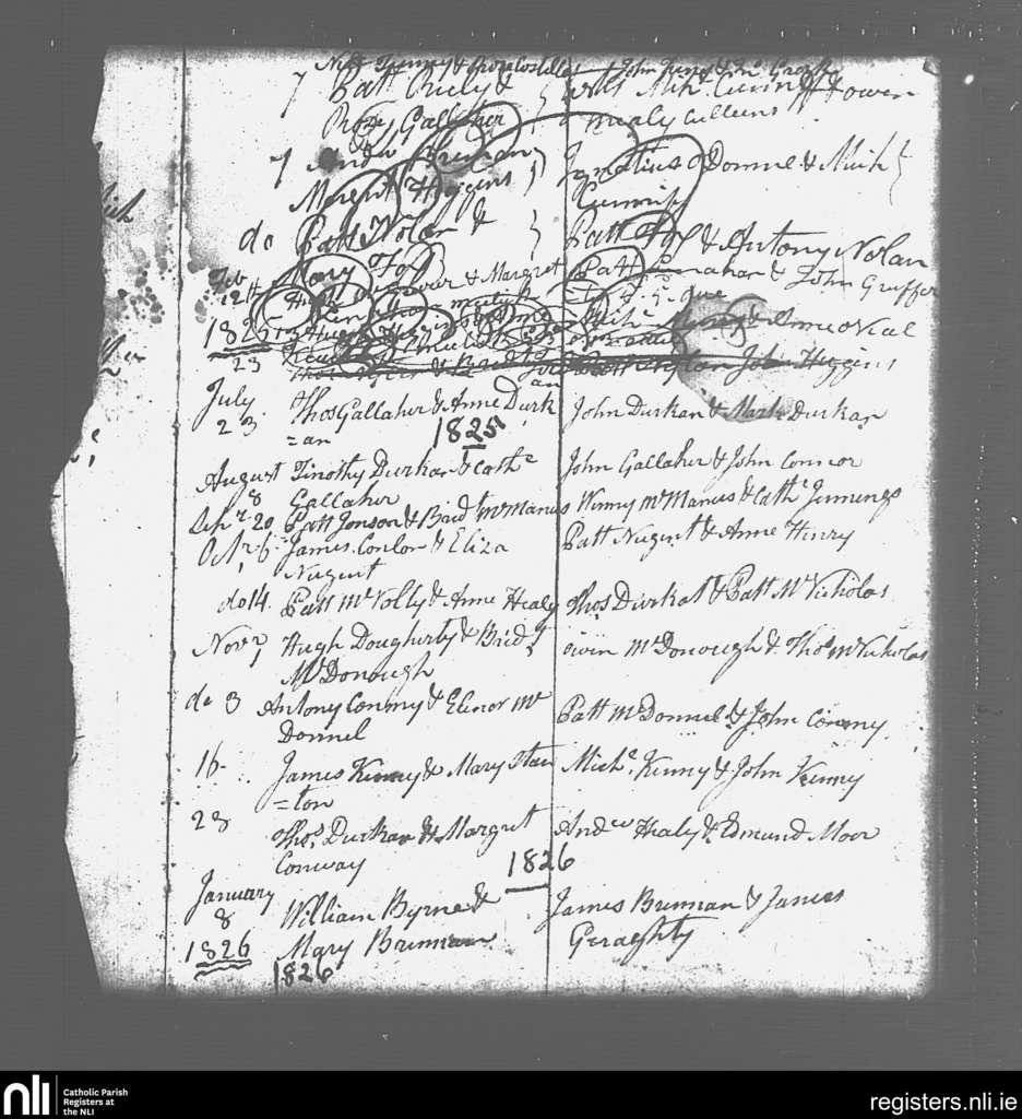 Swineford; County of Mayo; Diocese of Achonry. Marriages, Feb. 1825 to Jan. 1826