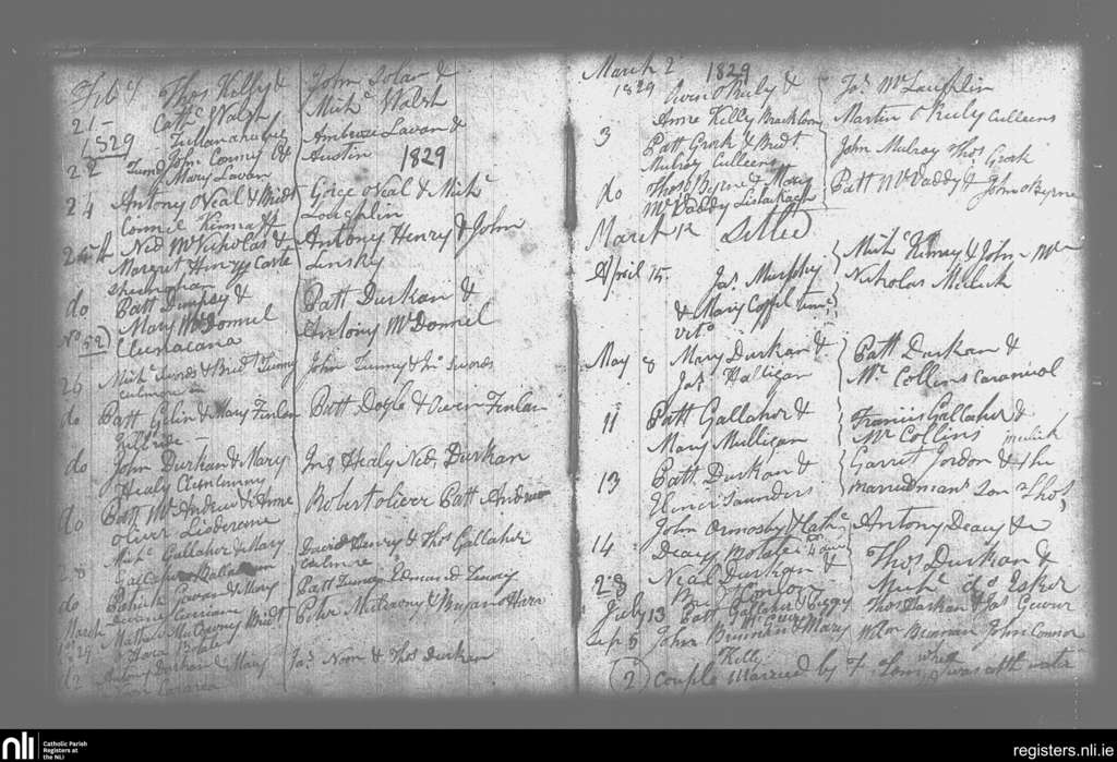 Swineford; County of Mayo; Diocese of Achonry. Marriages, Feb. 1829 to Sep. 1829