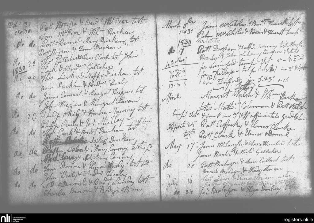 Swineford; County of Mayo; Diocese of Achonry. Marriages, Feb. 1830 to July 1830