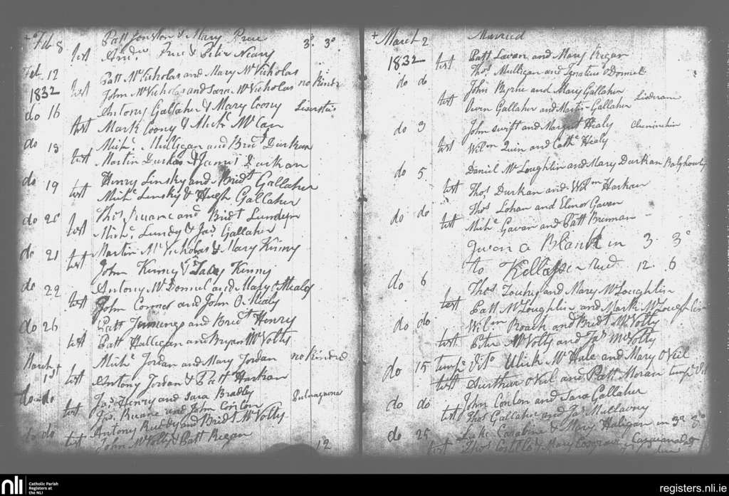 Swineford; County of Mayo; Diocese of Achonry. Marriages, Feb. 1832 to Mar. 1832