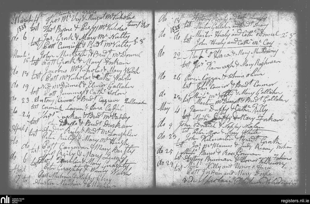 Swineford; County of Mayo; Diocese of Achonry. Marriages, Mar. 1838 to May 1838