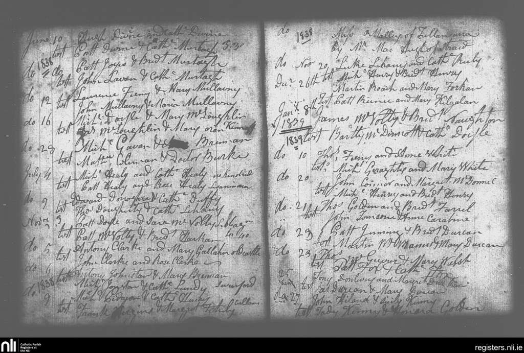 Swineford; County of Mayo; Diocese of Achonry. Marriages, June 1838 to Jan. 1839