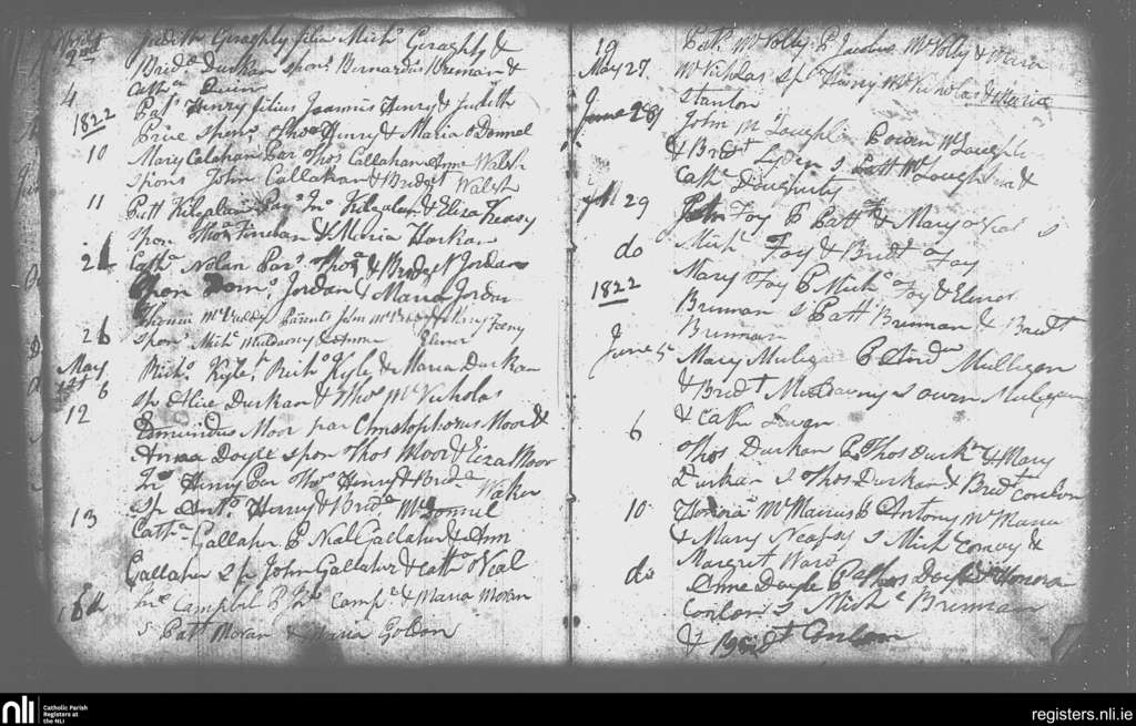 Swineford; County of Mayo; Diocese of Achonry. Baptisms, Apr. 1822 to June 1822