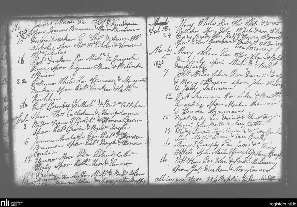 Swineford; County of Mayo; Diocese of Achonry. Baptisms, Jan. 1823 to Mar. 1823