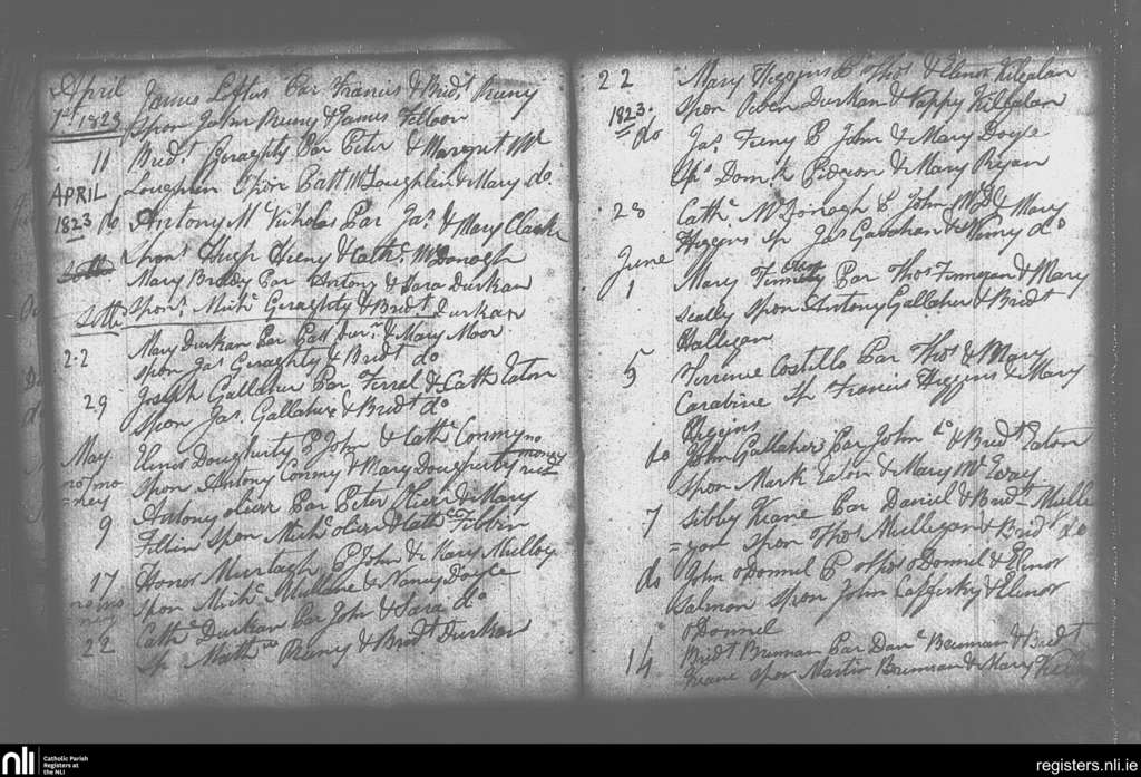 Swineford; County of Mayo; Diocese of Achonry. Baptisms, Apr. 1823 to June 1823