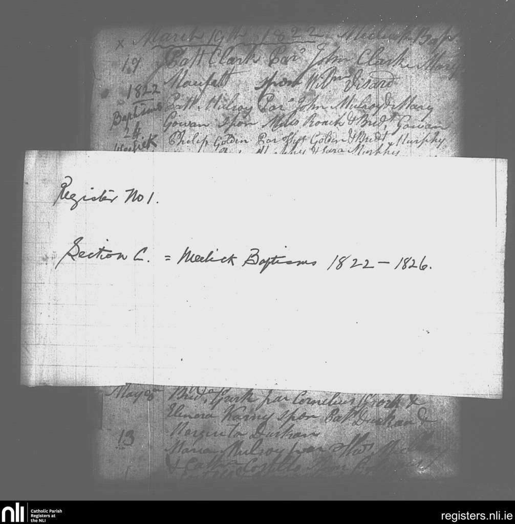 Swineford; County of Mayo; Diocese of Achonry. Baptisms, Mar. 1822 to May 1822