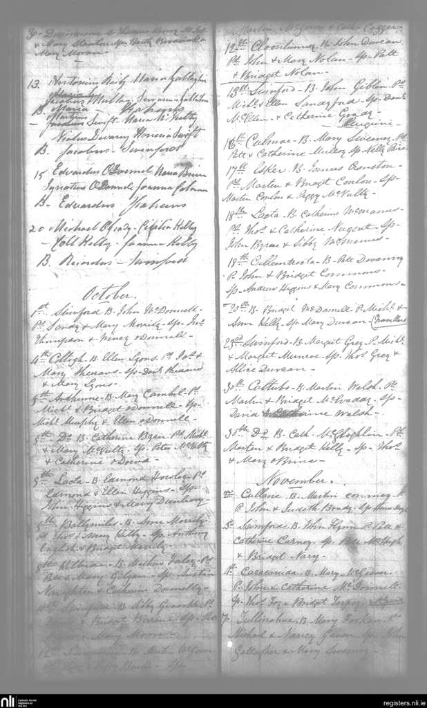 Swineford; County of Mayo; Diocese of Achonry. Baptisms, Sep. 1846 to Nov. 1846