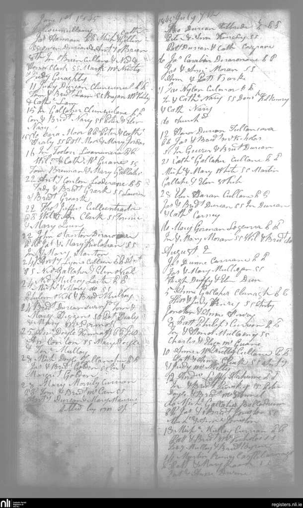 Swineford; County of Mayo; Diocese of Achonry. Baptisms, June 1845 to Aug. 1845