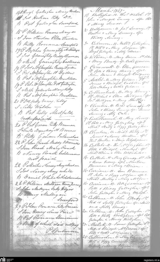 Swineford; County of Mayo; Diocese of Achonry. Baptisms, Feb. 1847 to Mar. 1847