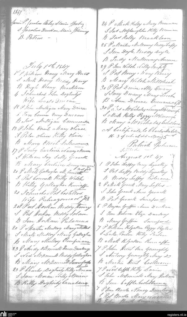 Swineford; County of Mayo; Diocese of Achonry. Baptisms, June 1847 to Aug. 1847
