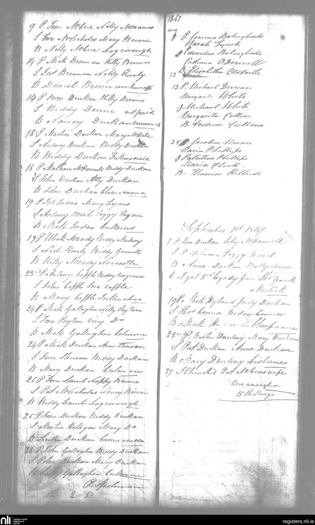Swineford; County of Mayo; Diocese of Achonry. Baptisms, Aug. 1847 to Sep. 1847