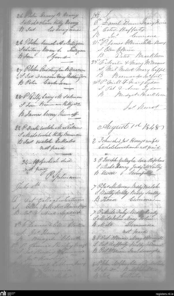 Swineford; County of Mayo; Diocese of Achonry. Baptisms, July 1848 to Aug. 1848