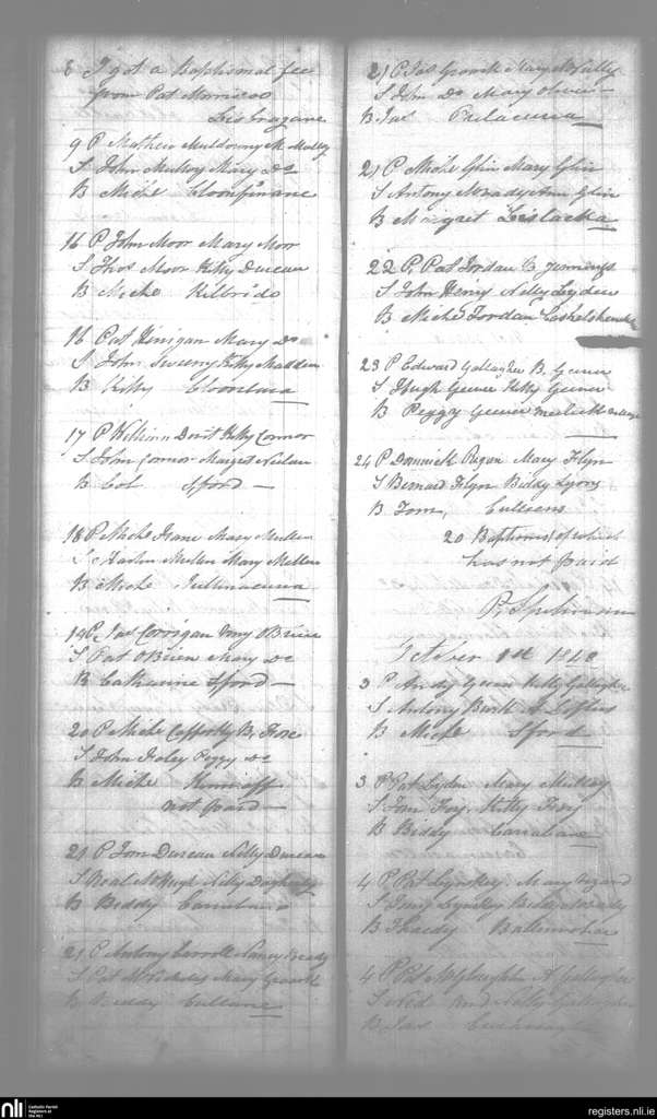 Swineford; County of Mayo; Diocese of Achonry. Baptisms, Sep. 1848 to Oct. 1848