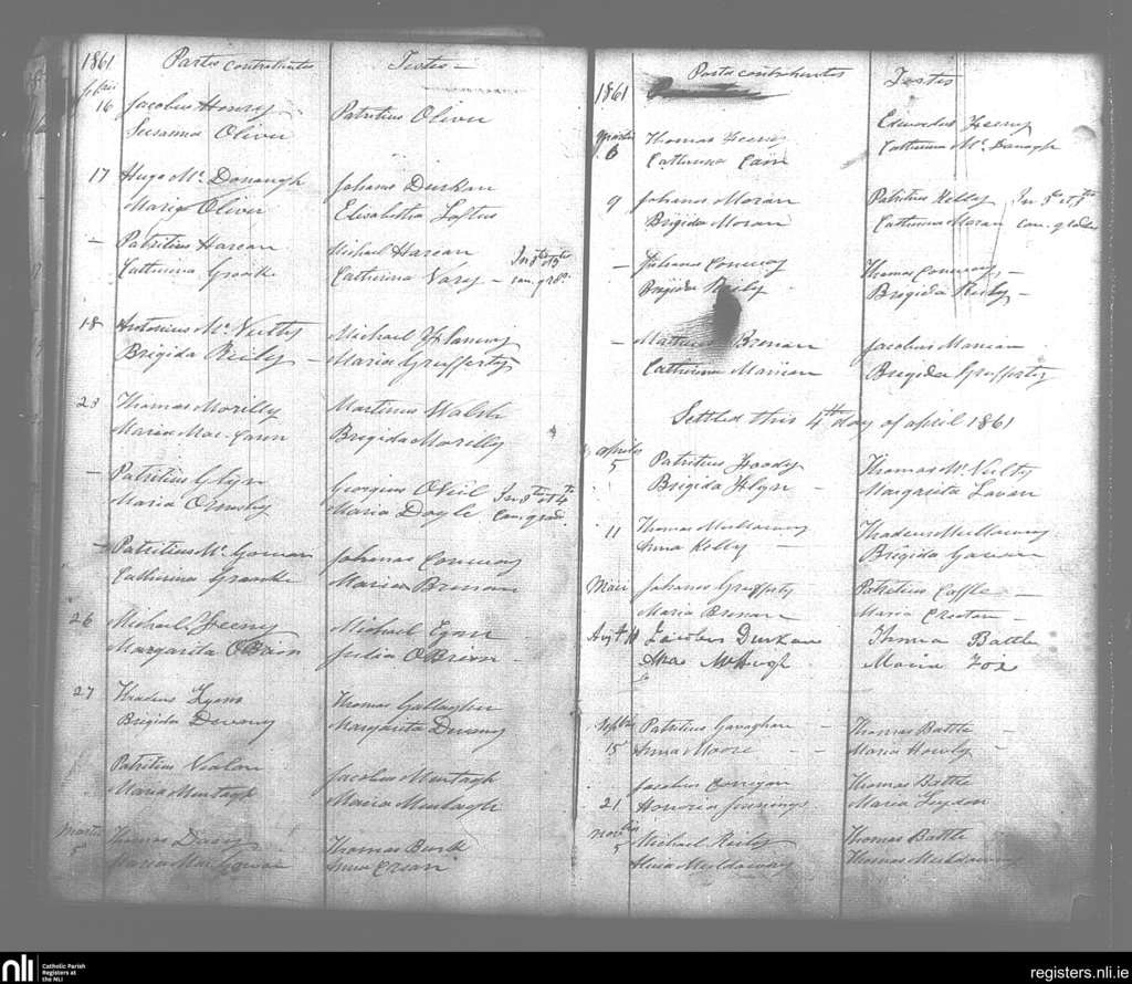 Swineford; County of Mayo; Diocese of Achonry. Marriages, Feb. 1861 to Nov. 1861
