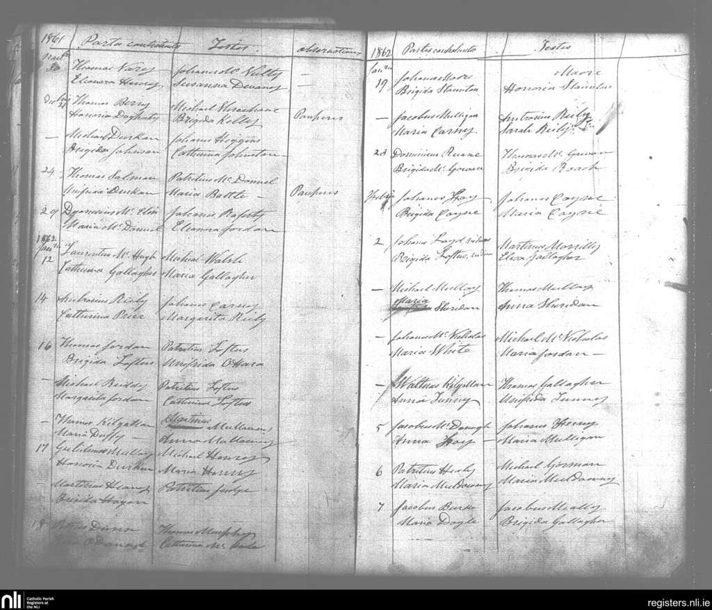 Swineford; County of Mayo; Diocese of Achonry. Marriages, Nov. 1861 to Feb. 1862