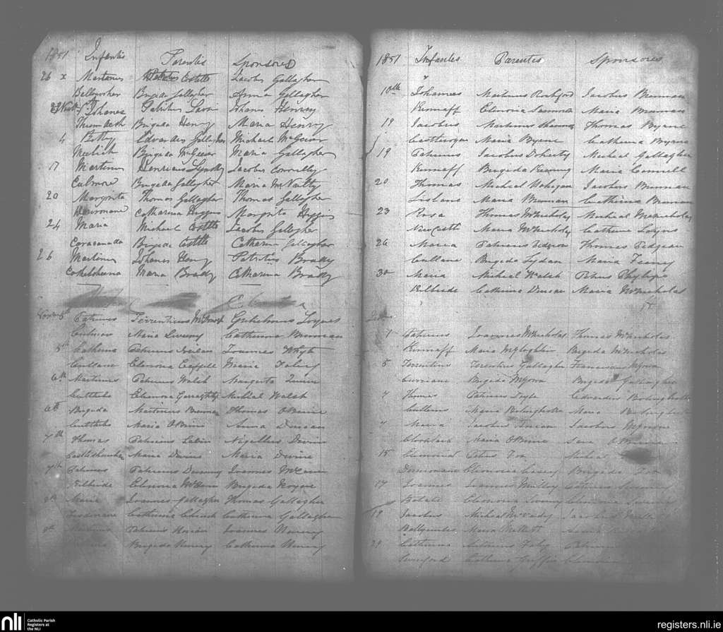 Swineford; County of Mayo; Diocese of Achonry. Baptisms, Oct. 1851 to Dec. 1851