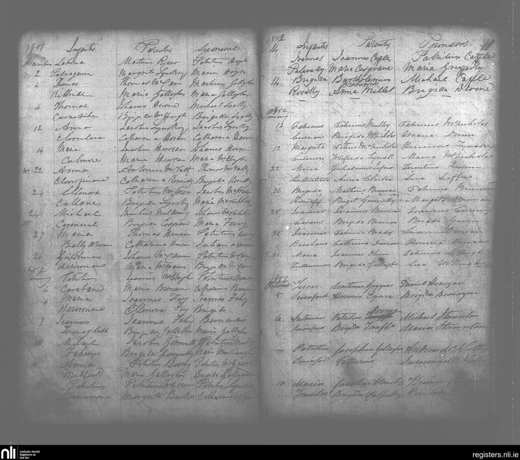 Swineford; County of Mayo; Diocese of Achonry. Baptisms, Oct. 1851 to Jan. 1852