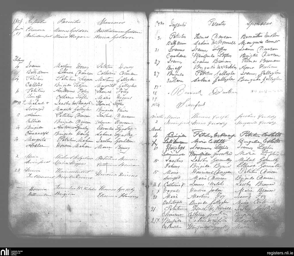 Swineford; County of Mayo; Diocese of Achonry. Baptisms, Jan. 1854 to Mar. 1854