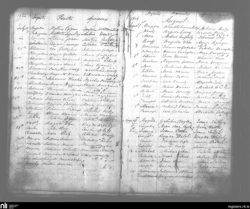 Swineford; County of Mayo; Diocese of Achonry. Baptisms, July 1854 to Aug. 1854