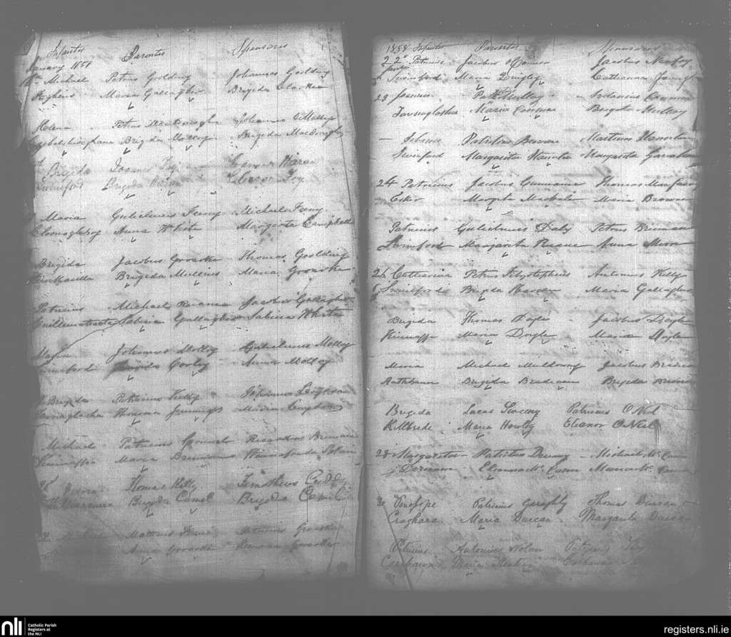 Swineford; County of Mayo; Diocese of Achonry. Baptisms, Jan. 1858