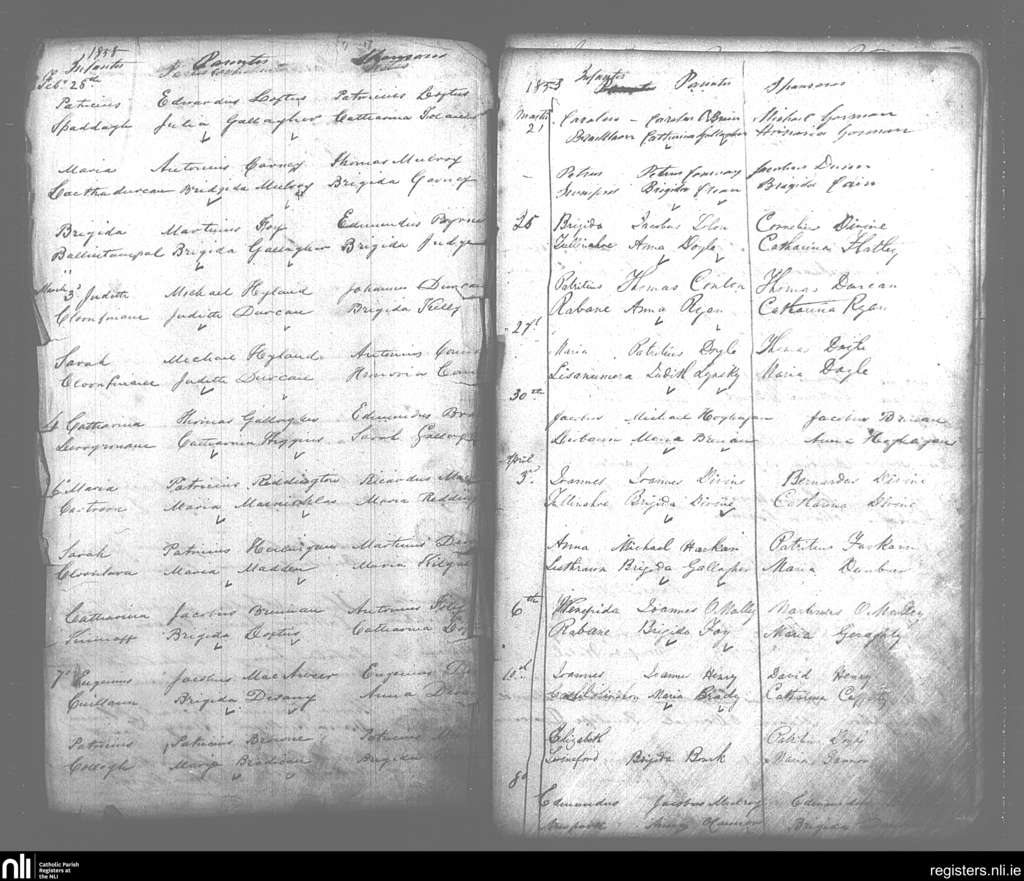 Swineford; County of Mayo; Diocese of Achonry. Baptisms, Feb. 1858 to Apr. 1858