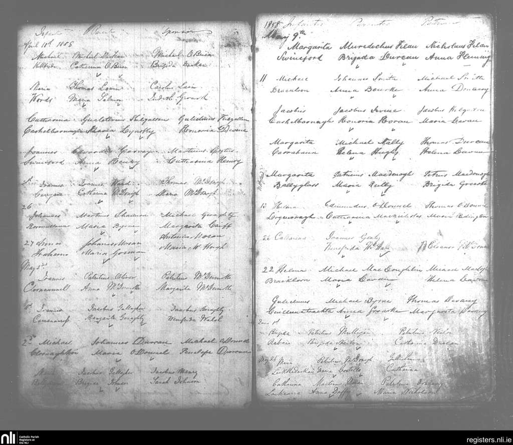 Swineford; County of Mayo; Diocese of Achonry. Baptisms, Apr. 1858 to June 1858