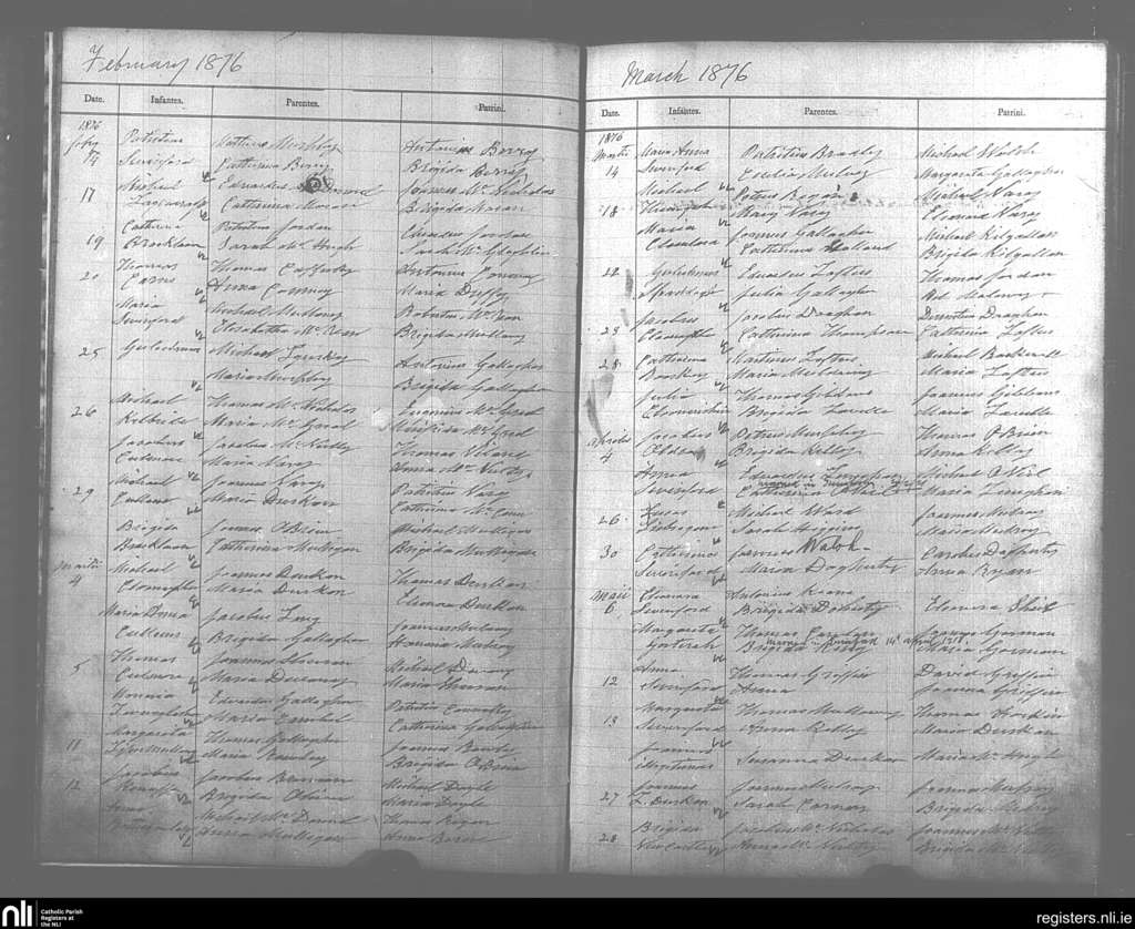 Swineford; County of Mayo; Diocese of Achonry. Baptisms, Feb. 1876 to May 1876