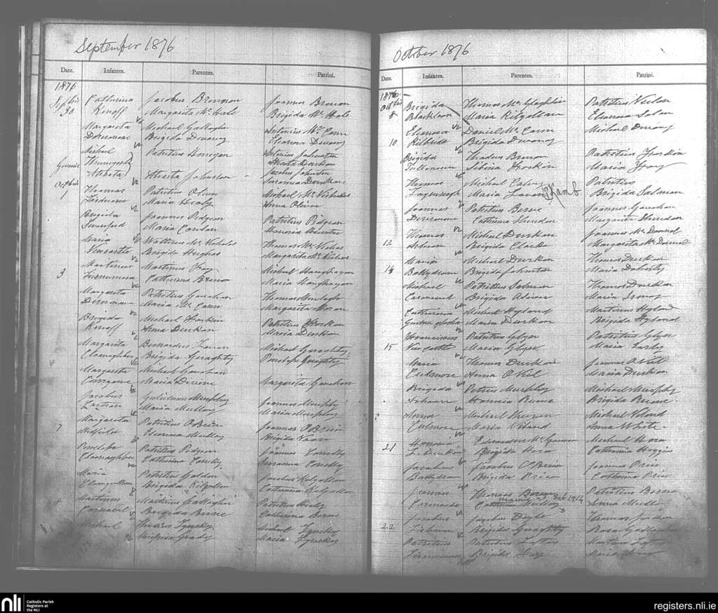 Swineford; County of Mayo; Diocese of Achonry. Baptisms, Sep. 1876 to Oct. 1876