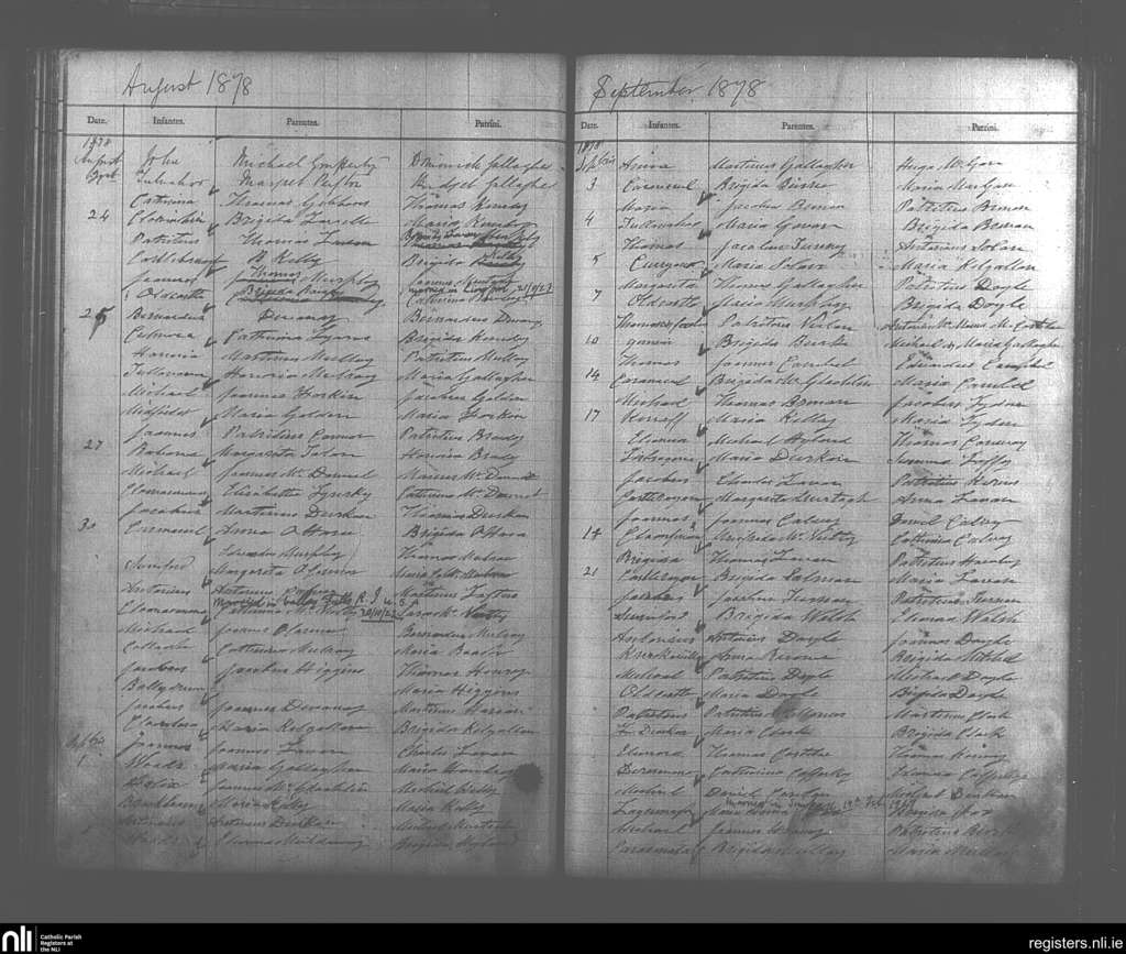 Swineford; County of Mayo; Diocese of Achonry. Baptisms, Aug. 1878 to Sep. 1878