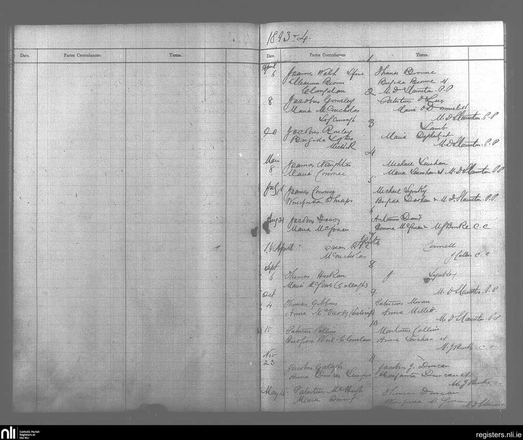 Swineford; County of Mayo; Diocese of Achonry. Marriages, Apr. 1893 to May 1894