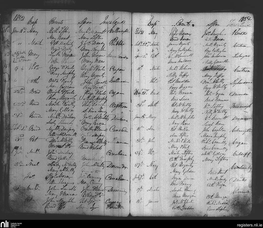 Killasser; County of Mayo; Diocese of Achonry. Baptisms, Jan. 1852 to July 1852