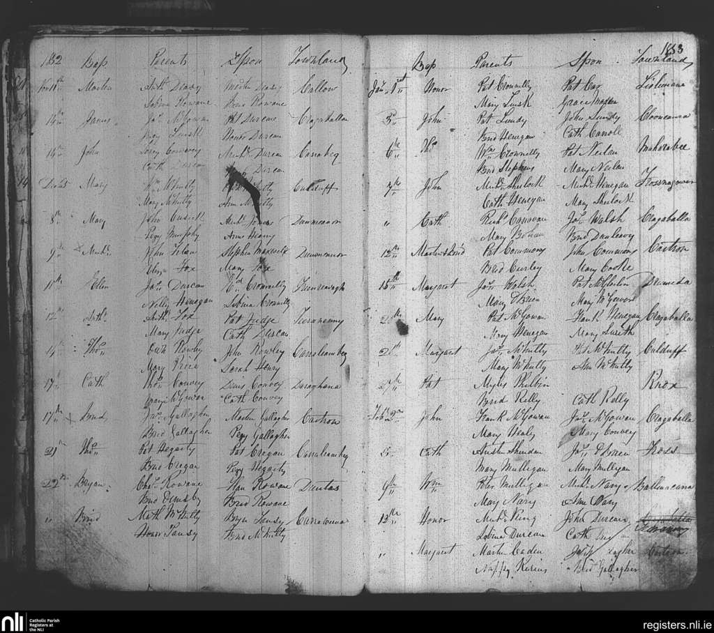 Killasser; County of Mayo; Diocese of Achonry. Baptisms, Nov. 1852 to Feb. 1853