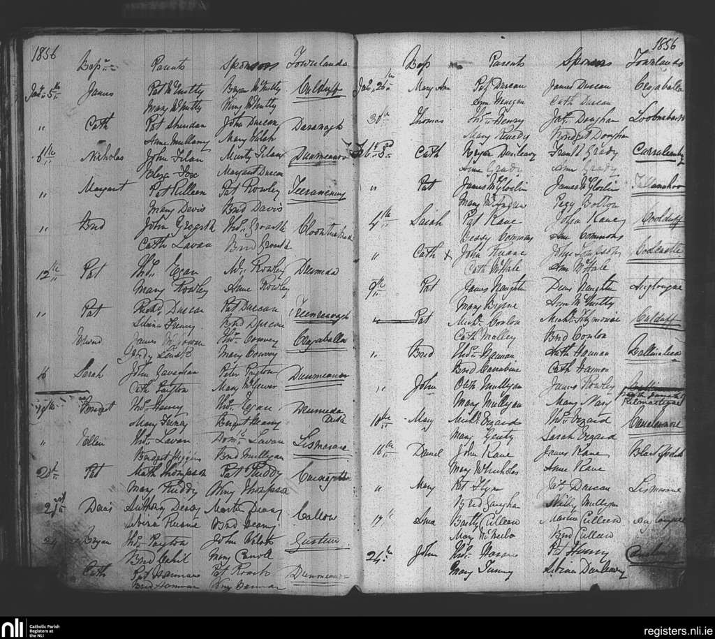 Killasser; County of Mayo; Diocese of Achonry. Baptisms, Jan. 1856 to Feb. 1856