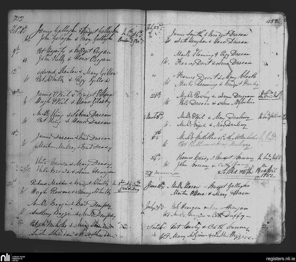 Killasser; County of Mayo; Diocese of Achonry. Marriages, Feb. 1852 to Nov. 1852