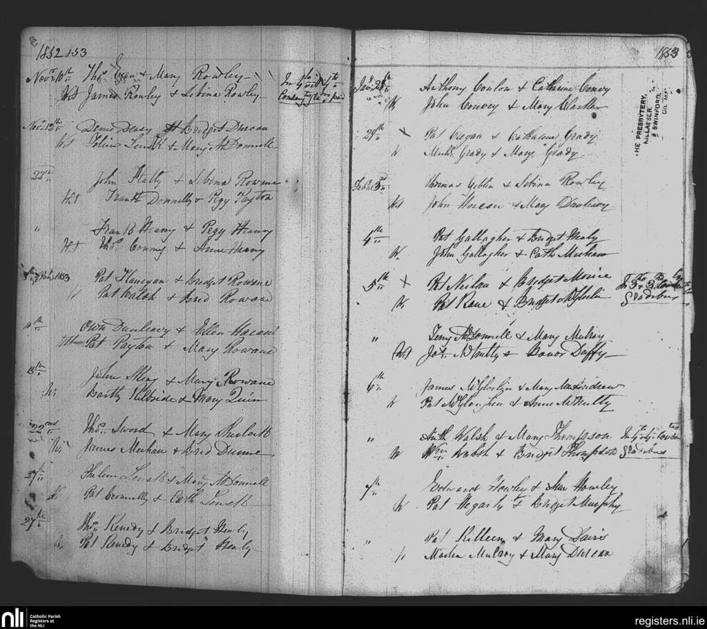 Killasser; County of Mayo; Diocese of Achonry. Marriages, Nov. 1852 to Feb. 1853