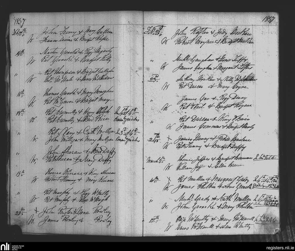 Killasser; County of Mayo; Diocese of Achonry. Marriages, Feb. 1857 to Mar. 1857