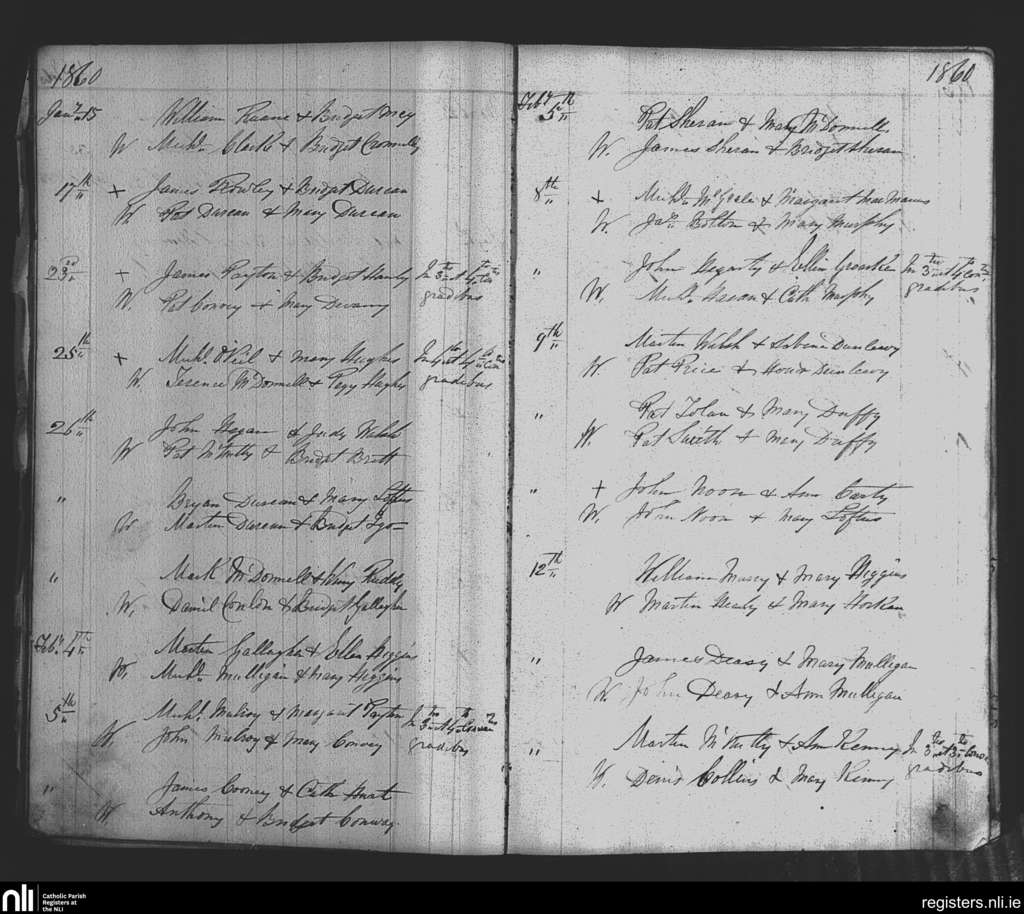 Killasser; County of Mayo; Diocese of Achonry. Marriages, Jan. 1860 to Feb. 1860