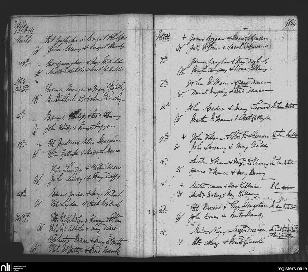 Killasser; County of Mayo; Diocese of Achonry. Marriages, Nov. 1863 to Feb. 1864