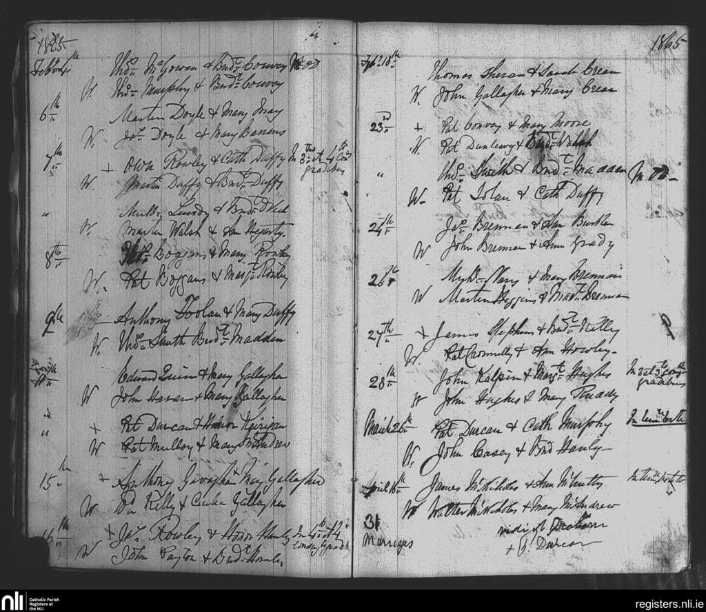 Killasser; County of Mayo; Diocese of Achonry. Marriages, Feb. 1865 to Apr. 1865