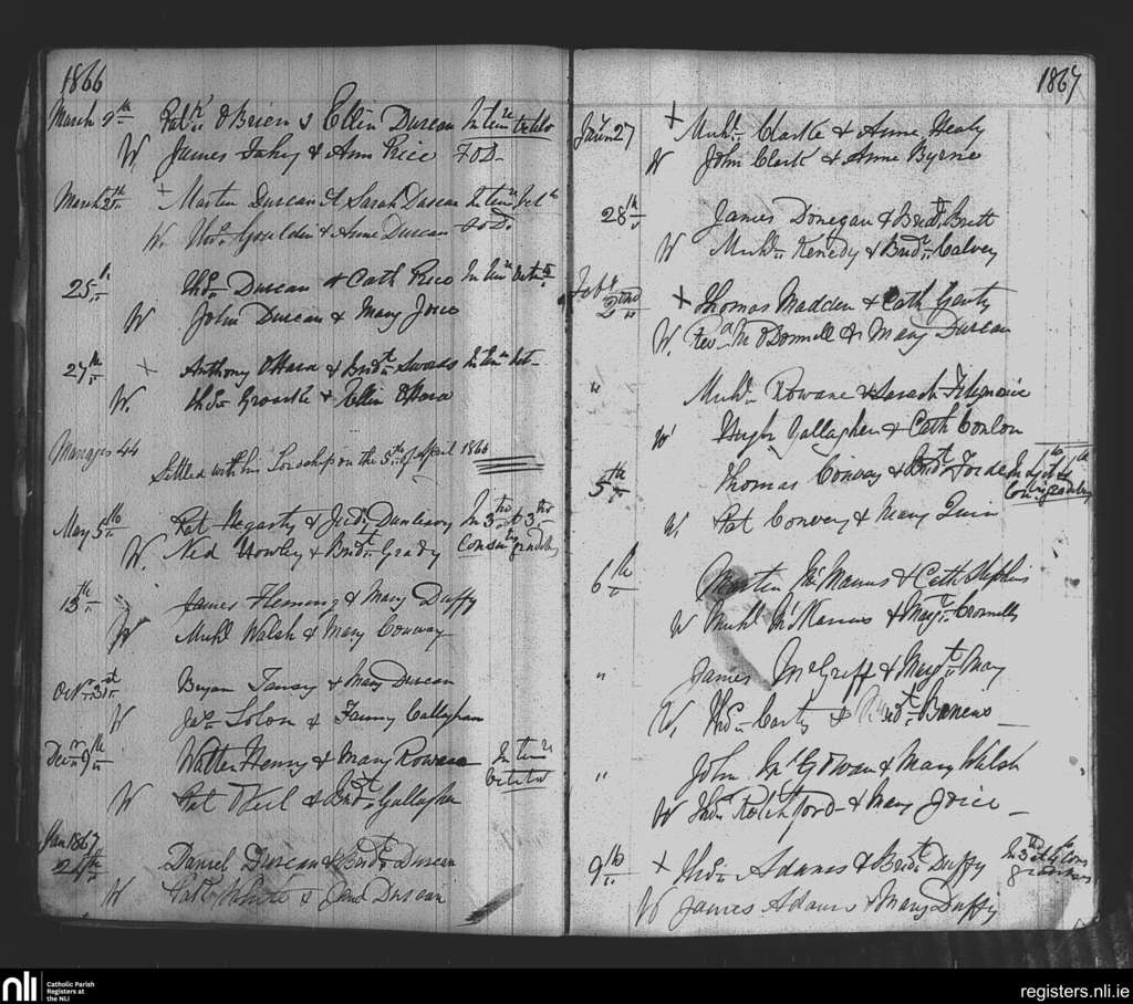 Killasser; County of Mayo; Diocese of Achonry. Marriages, Mar. 1866 to Feb. 1867