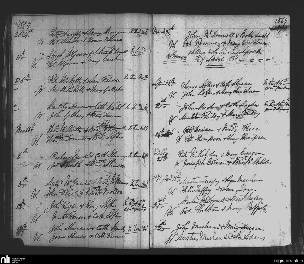Killasser; County of Mayo; Diocese of Achonry. Marriages, Feb. 1869 to Jan. 1870
