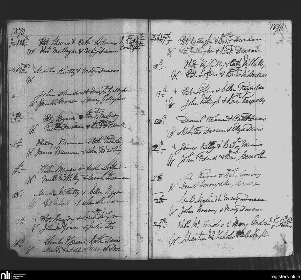 Killasser; County of Mayo; Diocese of Achonry. Marriages, Jan. 1870 to Feb. 1870