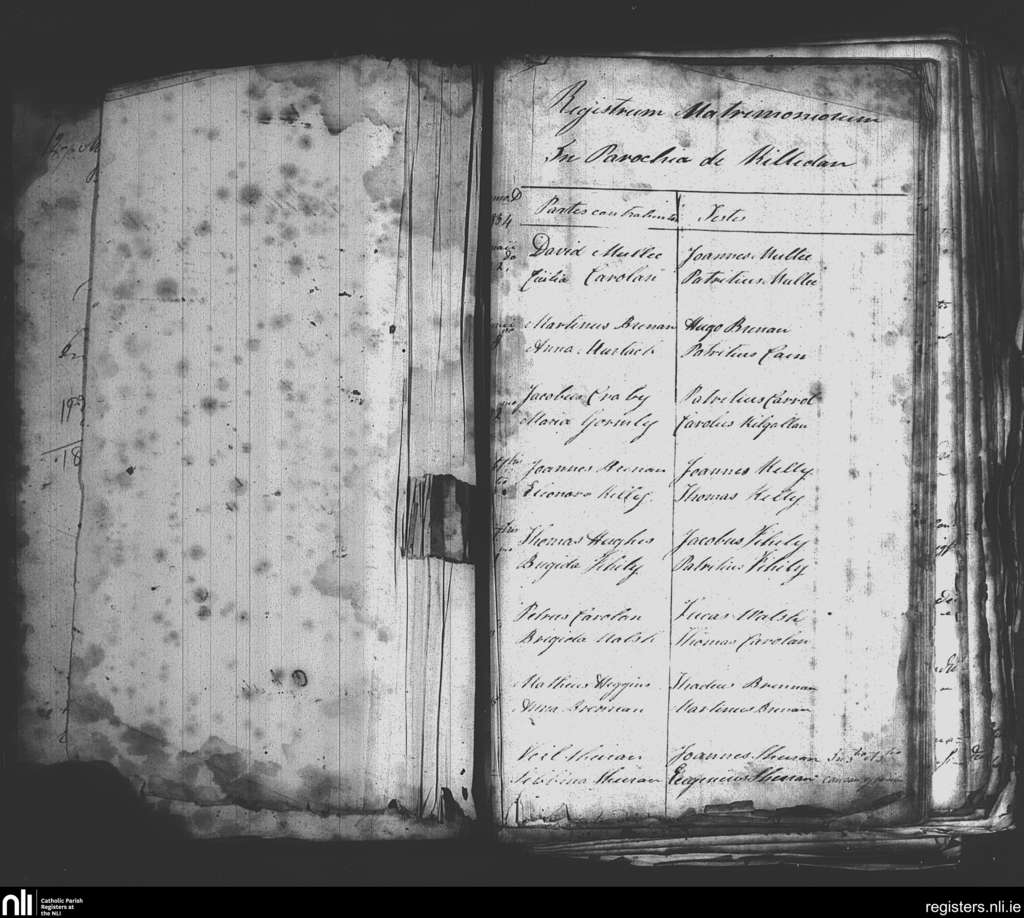 Killedan; County of Mayo; Diocese of Achonry. Marriages, June 1834 to Sep. 1834