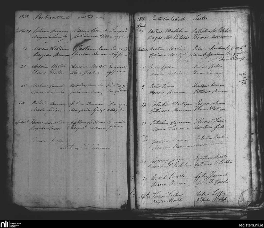 Killedan; County of Mayo; Diocese of Achonry. Marriages, Mar. 1838 to Sep. 1838