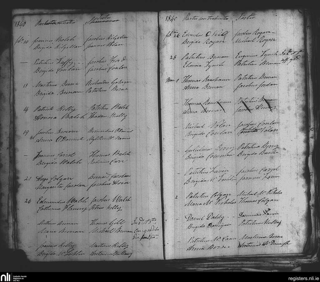 Killedan; County of Mayo; Diocese of Achonry. Marriages, Feb. 1840 to Mar. 1840