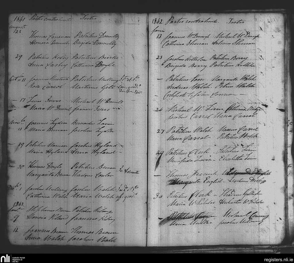 Killedan; County of Mayo; Diocese of Achonry. Marriages, Aug. 1841 to Jan. 1842