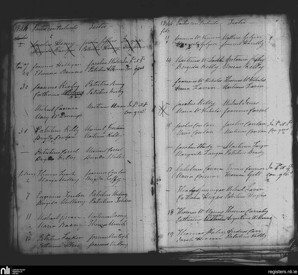 Killedan; County of Mayo; Diocese of Achonry. Marriages, Jan. 1844 to Feb. 1844